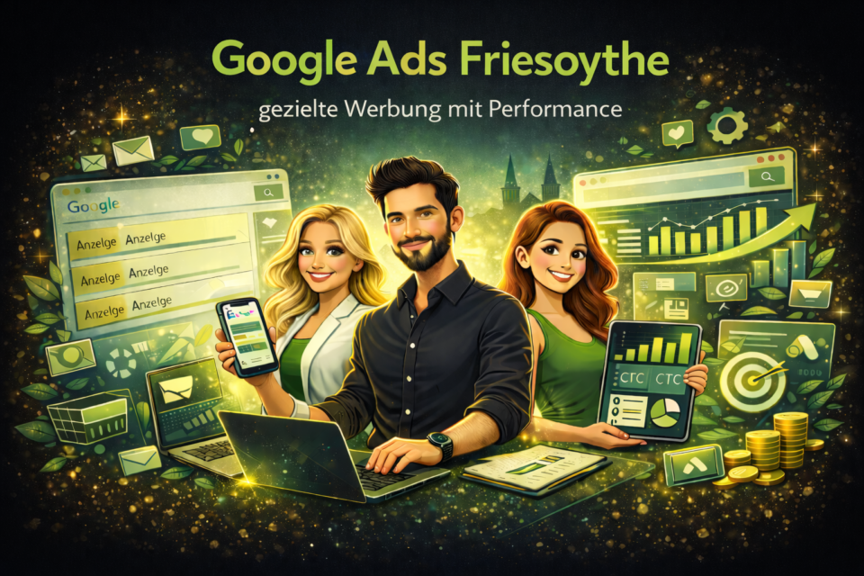 Professionelle Google Ads Friesoythe ermöglichen sofortige Sichtbarkeit für Unternehmen in der Region. Mit gezielter Google Werbung Friesoythe, strukturiertem SEA Friesoythe, strategischer Online Werbung Friesoythe und einer erfahrenen Google Ads Agentur Friesoythe entstehen messbare Anfragen und planbares Wachstum.